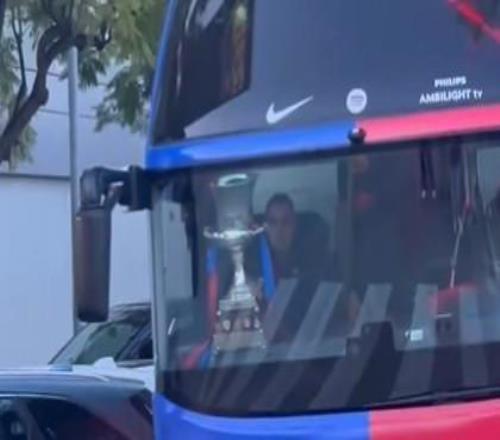 载誉归来,西超杯冠军奖杯已随队抵达巴塞罗那