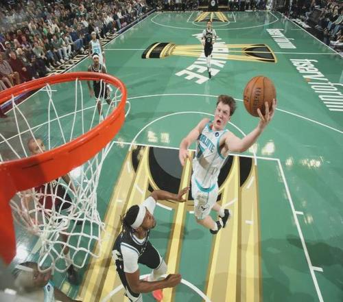 他不止能接球投,运球投。还是本届新秀突破第四多的球员,比飞天遁地的VJ-埃奇库姆打得更有侵略性。他突破攻筐的命中率高达53.8%,也是本届新秀最高。