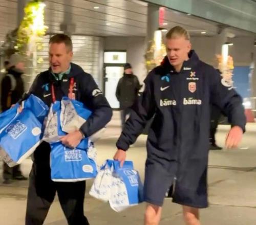 据挪威媒体TV2透露,在主场4-1战胜爱沙尼亚后,挪威全队在更衣室吃汉堡庆祝胜利,提供餐食的汉堡店经理接受采访时分享了给哈兰德送餐的感受。
