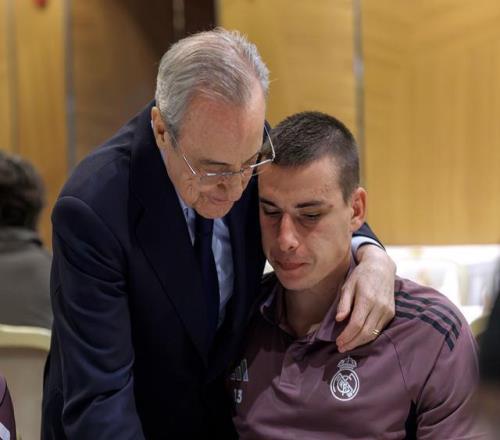 皇马官方晒照,俱乐部主席弗洛伦蒂诺已抵达吉达,在球队下榻酒店与球员和教练组打招呼。