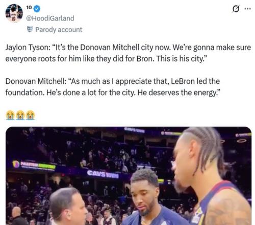 随后米切尔表示:“我很感谢你能这么说,但勒布朗奠定了这座城市的基础,他为这座城市付出了很多,他值得这份热情。”