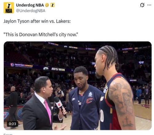 同时赛后还是发生了争议性的一幕,当记者询问有关詹姆斯父子本场重回克城的话题时,小将泰森打断提问说道:“现在这是米切尔的城市。”