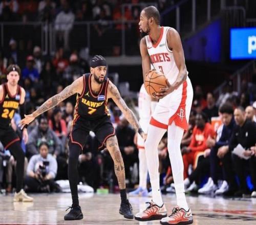 NBA常规赛,老鹰坐镇主场迎击火箭。本场比赛之前,火箭28胜17负排名西部第4,作为今年争冠热门之一,火箭的阵容结构非常扎实,锋线球员居多,人高马大,他们保持着联盟第一的场均篮板,攻防效率都在联盟前5。虽然火箭队目前的战绩,与上赛季同期相比提升幅度并不大,但杜兰特到来之后,火箭在季后赛的上限一定会提升,这一点是毋庸置疑的。另一边的老鹰队,本场比赛之前,24胜25负排名东部第9,近期老鹰迎来一波4连胜,正在势头之上,作为东部黑马之一,老鹰有机会在季后赛搅局。