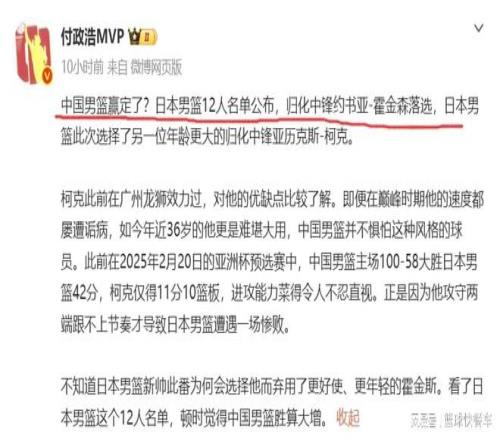 要知道,霍金森在上一个窗口期的表现可是非常全面,场均出战34.9分钟,场均砍下13.5分11板5助1助1.5盖帽的全面数据,在国际大赛比赛中,场均能够交出这样全面的数据,确实属实难能可贵。反倒是科克,一个接近36岁的老将,攻防两端的表现不大问题,也完全跟不上日本队的节奏。面对这样一个大个子内线,中国队即便没有周琦、杨瀚森,凭借着余嘉豪、焦泊乔和胡金秋,大概率也能轻松拿捏对手。