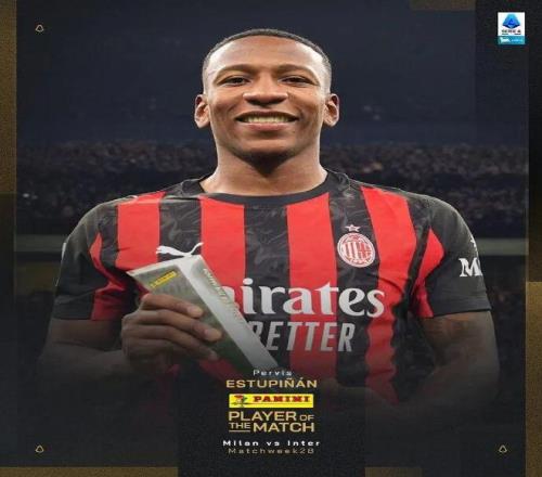 意甲第28轮比赛,埃斯图皮尼安打进米兰生涯首粒进球,米兰1-0击败国米。赛后埃斯图皮尼安也当选了本场比赛最佳球员。