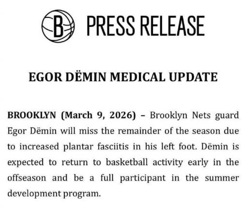 只是如今杰明因为脚足底筋膜炎伤势加重提前宣告赛季报销,预计杰明将在休赛期初恢复篮球活动,并全面参与球队的夏季发展计划。