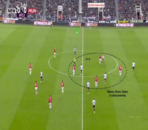 曼联希望库尼亚与纽卡斯尔的英格兰国脚特里皮尔对抗,数据显示,库尼亚最终触球68次,踢了77分钟的姆贝莫只有36次,谢什科才24次。
