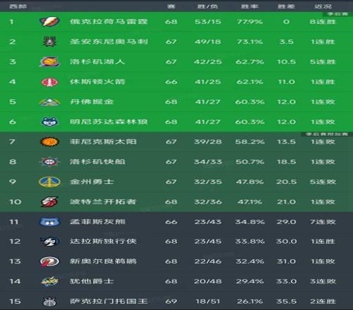 西部最新积分榜