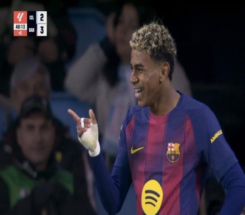 西甲第12轮,巴塞罗那客场对阵塞尔塔,亚马尔上半场破门为巴萨取得领先,至此,亚马尔已连续3场比赛进球,追平职业生
